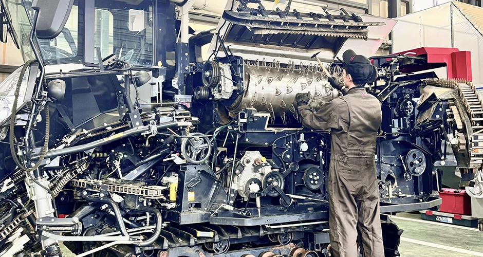 農機具も最先端技術を取り入れて、自動操舵システムや無人トラクターなどがありますが、それでも基本はまだまだメカメカしい修理が多く、エンジン脱着・О/H(オーバーホール)やミッション脱着修理など通常の部品交換作業に比べて大掛かりな修理では高度な技術・知識が必要ですし、滅多にない修理なので、整備としてはとても印象に残っている業務です。
